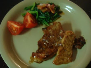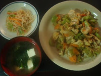 昨日の夕食まあまあ見栄えよくできましたよ。厚切り豚のしょうが焼きとほうれん草のベーコンドレッシングがけ。あっ ピンボケだった。ショック!とうちゃんは、ほうれん草お浸しに。今晩は、冷凍してあったカレーと、冷凍してあったトンカツ用にしてあった豚で、カツカレーです。手抜き手抜き。 あっ!ご飯足りない!冷ご飯でいいか。明日もって行く巻きお寿司の用意しなくっちゃ!とうさんの弁当はそれとちょこっとおかず。子どもはあんまり食べないから、今日のカツでどうにかしよう。毎日これが大変。明日の晩は何しようかなあ。