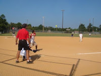 飲み物がなくなったので、父さんのところに戻る。が、ここ最近になく暑かったので、父さんもいっぱい飲む。なんたって3試合目。ジュースパックは一人一個あったものの、足りず、もう一度公園に戻って(リーがもう一度いくと言うので)、お水を購入。機関車の汽笛が聞こえたので、乗れるかと思ったけど、結局だめでした。お水を持って、もう一度父さんの下へ。ちょうど試合終了。3連敗。でも、最後は4対6といい感じ。リーは、公園から戻る途中で、バギーに乗っておねんねです。ちょっとした反省会の後、帰宅。