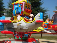 た。結局抱っこのまま終了。結構早くまわるので、目が回った方も。次は、カラフルな乗り物が目に入る。飛行機やヘリコプターが回りながらアップダウンするもの。全員乗れなかったので、後の子が終わるまで、滑り台や、ブランコのある公園で遊ぶ。後の子達も、遊び始めたから、みんなで行動したかったのだけど、お兄が待てない。今回年長者のお兄。小さい子に合わせてられない。次は車の乗り物へ。りーちゃんはT君と、もう一度、飛行機に乗りたがってごねる。でも、Tくんが、車に乗ると言ったら、「乗る」と。Tくん大好きリーちゃんです。